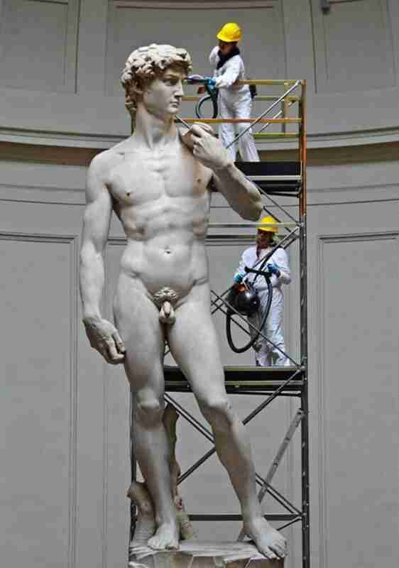 È molto raro che si provi un profondo piacere nello scrivere un articolo. Questo è decisamente uno di quei casi, perché si tratta di raccontare una storia ad un tempo oltremodo comica e anche fortemente simbolica. Specie per me che la racconto. Scenario: il Museo Aleksandr Puškin di Mosca, presso quello che viene chiamato “cortile italiano” per la presenza di molte opere e reperti provenienti appunto dall’Italia. Tra questi vi si trova una delle cinque copie del David di Michelangelo, considerata forse la migliore di tutte. La gigantesca meraviglia michelangiolesca è alta cinque metri, cui si aggiunge un piedistallo, ragion per cui la manutenzione alla statua viene fatta usando delle impalcature, con gli uomini (nessuna donna è ammessa a fare questo lavoro, considerato troppo pericoloso…) imbragati per sicurezza. Com’è noto, il David di Michelangelo è stato rappresentato integralmente nudo.